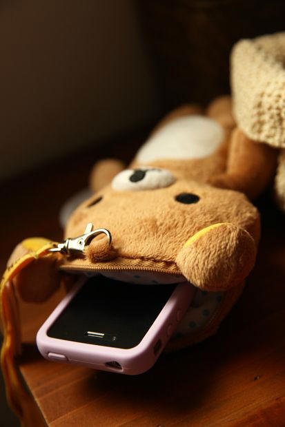Rilakkuma plush doll that is actually a pouch for your phone! Approximate size is 11cm x 21cm . Almost all phones should fit fine (maybe not those big tablet phones ..i.e. Note, Note 2, etc.)